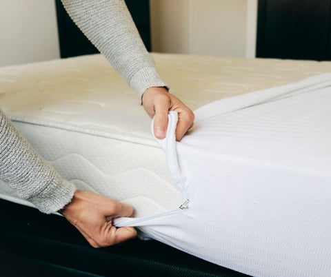 5. Zip the mattress cover fully. This should be done when the mattress is on the bed.